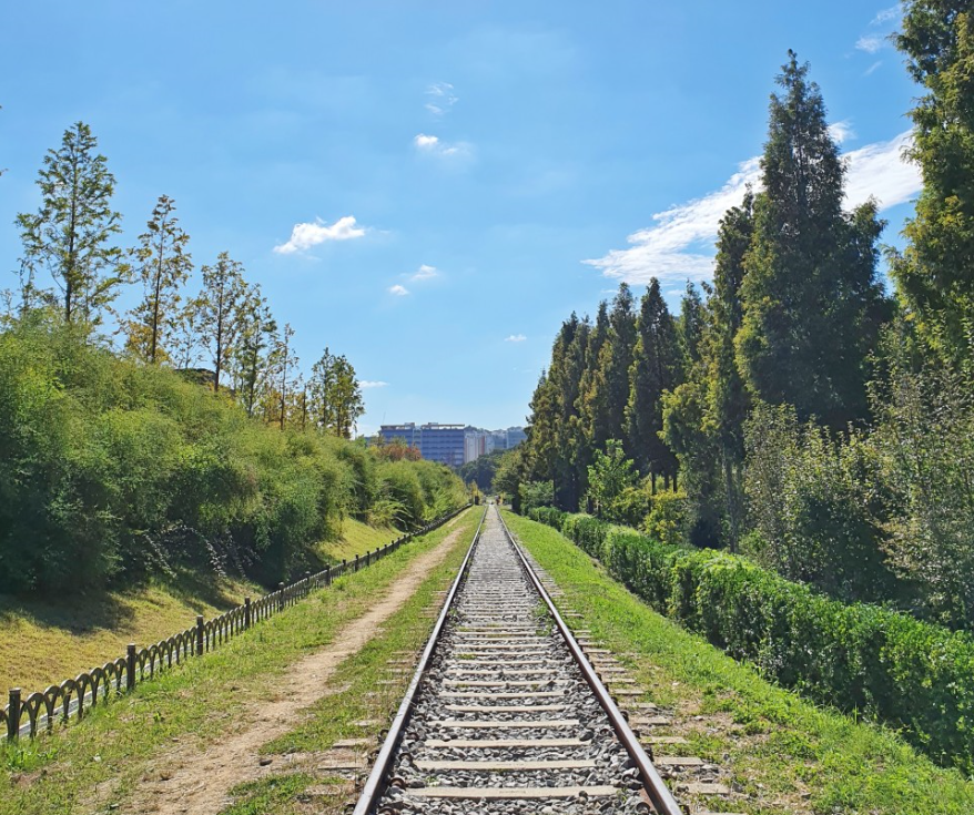 수목원 바깥쪽으로 철길이 쭉~ 이어져있고