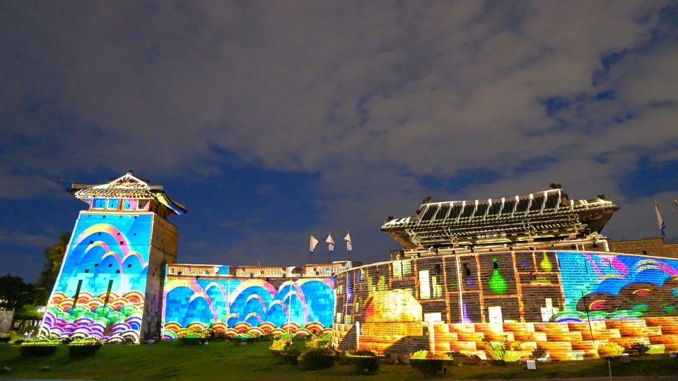 만천명월 정조의 꿈, 빛이 되다라는 주제로 화서문과 서북공심돈 좌우 성벽 220m구간에서 펼쳐집니다. 여러 성곽 문들이 있는데요. 헷갈리시죠? 그냥 지도 검색에 화서문 해서 찾아 오시면 됩니다.ㅎㅎ